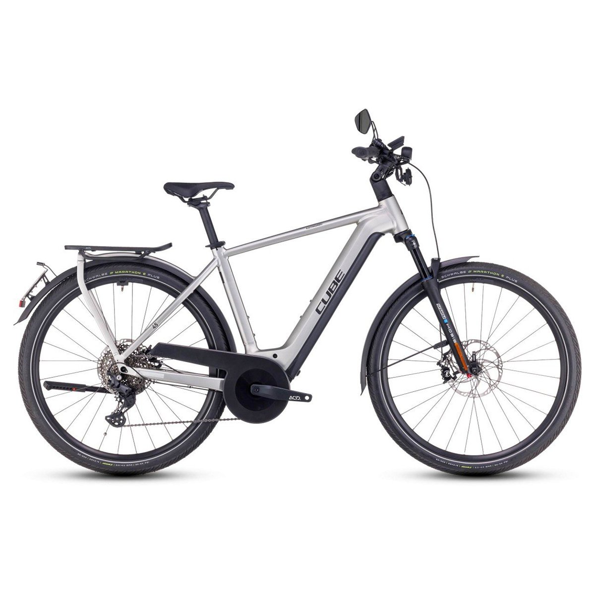 De Cube Kathmandu Hybrid 45 750 is een krachtige en comfortabele speedpedelec met de Bosch Speed-motor, 750 Wh accu en volledige uitrusting voor dagelijks woon-werkverkeer. Dankzij het stijve frame met geïntegreerde accu en drager, luchtgeveerde vork en topcomponenten van Shimano, Magura en Schwalbe rijd je snel, stabiel en met een glimlach door elke rit.